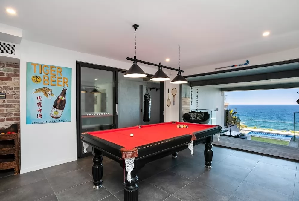 Points shown are per week and vary throughout the year depending on the dates booked. 5 Bedroom, 5 Bath, Sleeps 10. Modern, luxurious, 3 story house with 180 degree sweeping ocean views over the rugged South Curl Curl Beach in Sydney, Australia, just 2 blocks away. Curl Curl and Freshwater beaches can be accessed in a few minutes down various stairways. Stunning sun and moon rises from multiple terraces. The 3 floors offer different zones: lower ground floor provides a billiards room, movie lounge, 5th bedroom and bathroom and outdoor entertainment space with lawn area and swimming pool. The ground floor provides an open plan kitchen, butlers pantry, dining room, lounge, relaxation zone and balcony. The top floor is the sleep zone, featuring 4 bedrooms with a huge, sun drenched roof terrace. There are 4 x Queen bedrooms (1 with ensuite) plus the King master suite, as well as a double sofa-bed in the movie lounge. The home is an easy stroll to the chilled, beachside village of Freshwater or a 30 minute walk (10 min drive) into Manly Beach. There are plenty of restaurants, bars and outdoor activities close by and the Sydney Central Business District is 15km away. No smoking indoors.